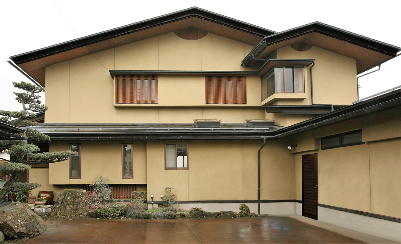この住宅はオーナーの両親が営んだ店舗を引き継ぎながら、他に数カ所で事業を営んでいる家族の住まいです。