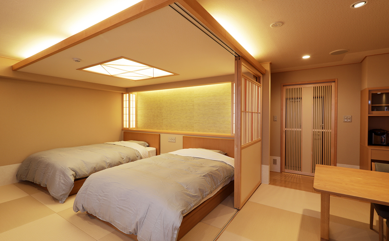 前回の5室と同調しながら客層と嗜好に応じて、また既設の和風の客室との対比効果によってお客様のニーズに幅広くこたえることを願いとして設計デザインを行っています。
